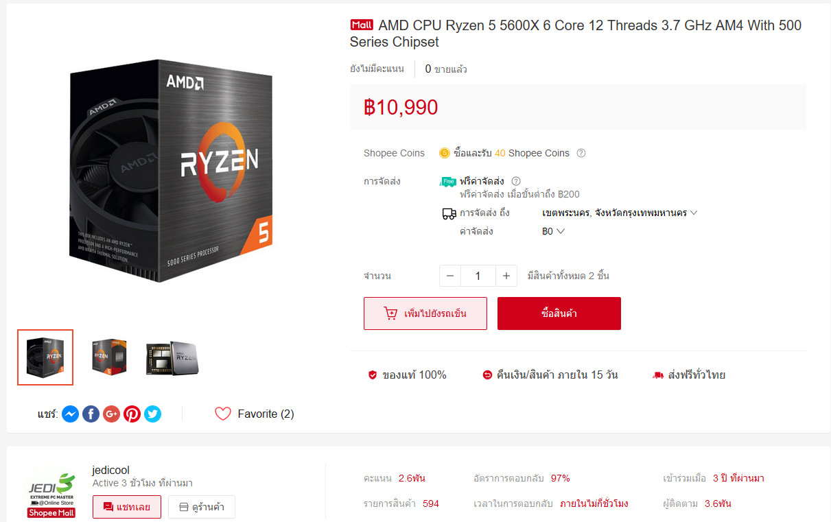 #AMD #Ryzen #5000series #Ryzen5 #5600x เปิดตัวไปเมื่อวีคก่อนและเริ่มขายในไทยเมื่อ 3 ท่มเมื่อวานที่ผ่านมา (5/11/2020) ราคาของตัว Ryzen 5 5600x 6 Core / 12 Threads ที่หลายคนรอคอยจะสอยกันอยู่แอดลองจิ้มสำรวจใน Shopee เจออยู่ 6 ร้านเอามาขายกันแล้วราคามีถูกแพงตามกันไป ใครมี Coin ก็ใช้ถมไปหรือใครมีโค้ดก็ใช้ลดบวกเพิ่มก็ประหยัดไปอีก คุ้ม ๆ เลยเน้อ