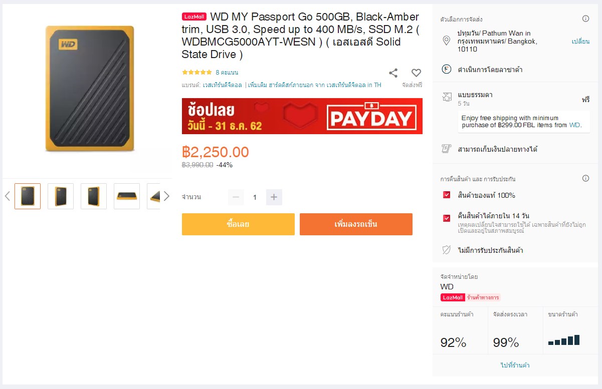 7. WD MY Passport Go 1TB, Black-Amber trim, USB 3.0, Speed up to 400 MB/s, SSD M.2 ( WDBMCG0010BYT-WESN ) วาร์ป > http://bit.ly/2EWFNpV