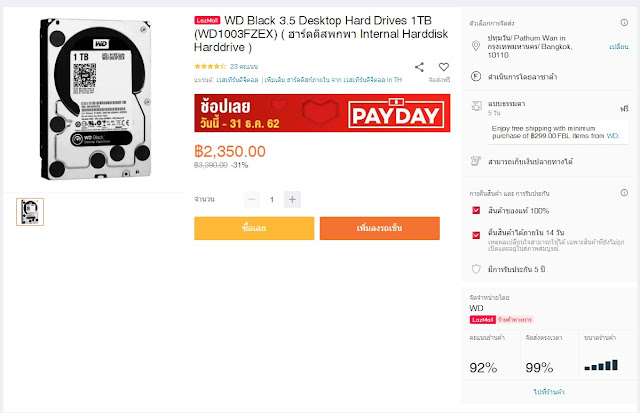 2. WD Black 3.5 Desktop Hard Drives 1TB (WD1003FZEX) วาร์ป > http://bit.ly/2QqNSs2