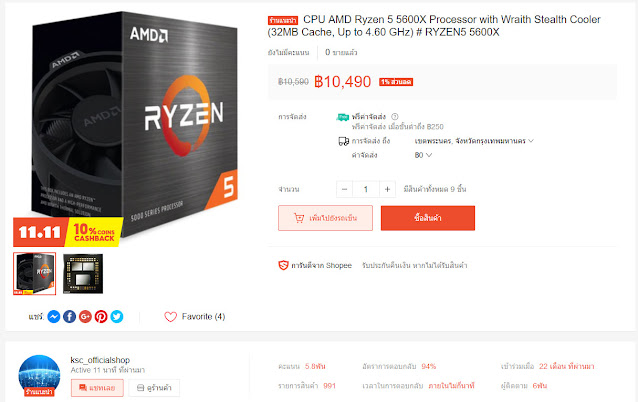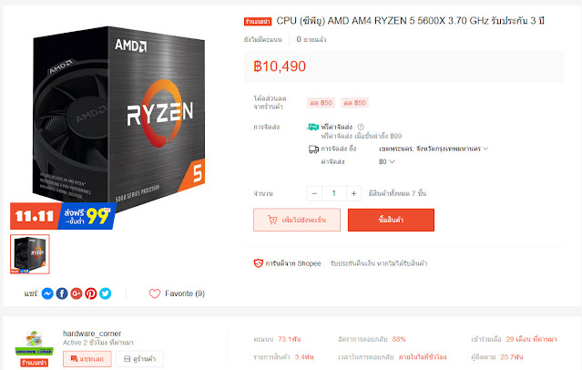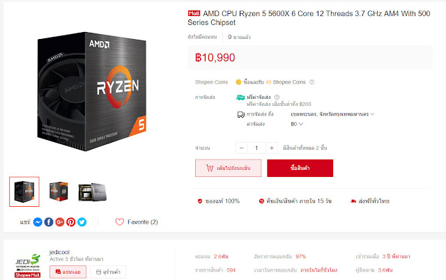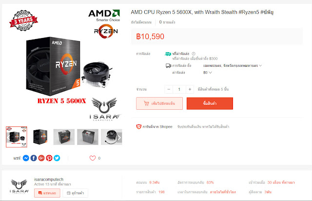 #AMD #Ryzen #5000series #Ryzen5 #5600x เปิดตัวไปเมื่อวีคก่อนและเริ่มขายในไทยเมื่อ 3 ท่มเมื่อวานที่ผ่านมา (5/11/2020) ราคาของตัว Ryzen 5 5600x 6 Core / 12 Threads ที่หลายคนรอคอยจะสอยกันอยู่แอดลองจิ้มสำรวจใน Shopee เจออยู่ 6 ร้านเอามาขายกันแล้วราคามีถูกแพงตามกันไป ใครมี Coin ก็ใช้ถมไปหรือใครมีโค้ดก็ใช้ลดบวกเพิ่มก็ประหยัดไปอีก คุ้ม ๆ เลยเน้อ