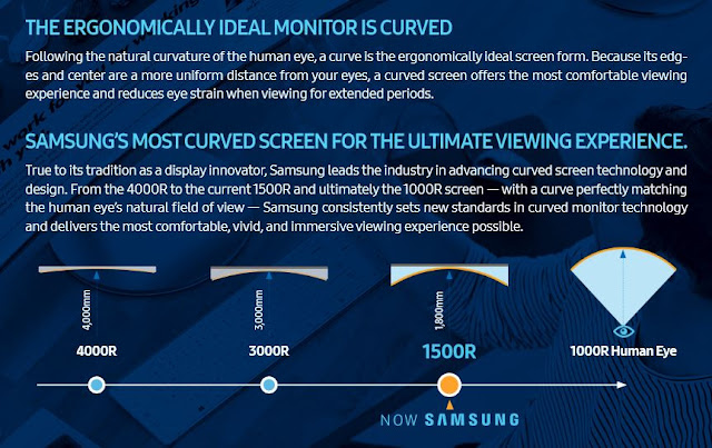 แต่มันคือจอที่เป็น Curved Panel ซึ่งหลายคนอาจจะไม่ชอบแต่สำหรับแอดแล้ว คือดีต่อดวงตาและการใช้งานเล่นเกมกับ Entertainment ซึ่งจอโค้ง นี้  ยิ่งค่า Curved  ต่ำก็ยิ่งโค้งรับเข้ากับดวงตาในรัศมีการมองเห็นขอมนุษย์มากขึ้น ซึ่ง เอาจริงๆ ตอนที่เขียนพิมพ์บทนี้ Samsung ก็มีขาย Panel จอโค้ง 1000R ไปแล้วล่ะ