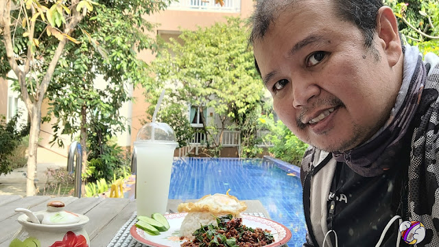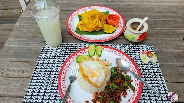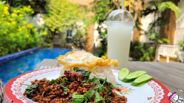 กระเพราะเนื้อที่คือกระเพราจริง รสชาติเหมือนกินที่บ้านก็ไม่มีอะไรยุ่งยากไม่เน้นรสชาติแบบจัดเกินไป ไข่ดาวพอไหว เหมือนกินตามร้านอาหารตามสั่งแต่นี่ตรูนั่งกินในสวนที่สวยแบบสงบใจร่มรื่นดีมาก กินไปเสพบรรยากาศไปนี่ถ้ามีเพื่อนมาด้วยอีกคน คงคุยนั่งยาว