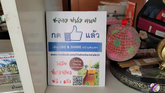 จู่ ๆ ก็แว่บเอ้ยเห็นอะไรหว่ามีร้านอาหาร มีกาแฟ มีของกิน เอ๊ะนึกบ่นในใจมาก่อนตั้ง 5 กิโลเมตร ไม่นึกว่าโชคชะตาจะมาเจ๊อะ… เอ้า! วกรถแล้วเลี้ยวเลย อ่านป้ายชื่อร้าน ชะลอม ฟาร์ม คาเฟ่ย์ เห?.?. จะเป็นไงหว่า มีร้านอยู่แบบนี้เหรอ จะเป็นฟาร์มหรืออะไรเนี่ย ต้องไปดู เหมือนหลงทาง แบบงง ๆ