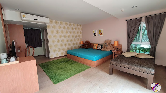 บรรยากาศห้อง ห้องนี้เอาไว้รับรองแบบครอบครัว ๆ ใครมาก็จองได้ พาลูกหิ้วหลานมานอนแล้วโดดลง