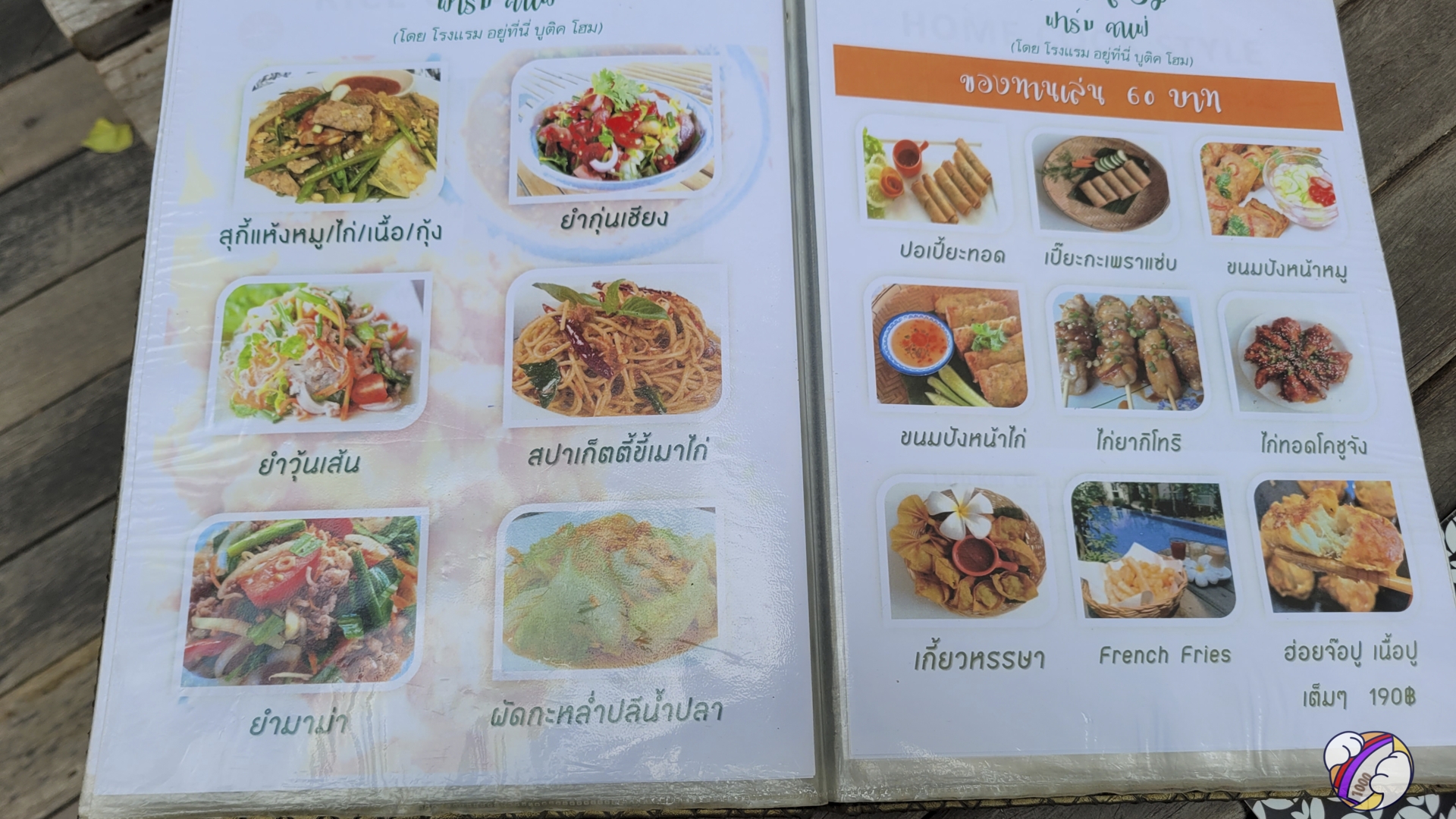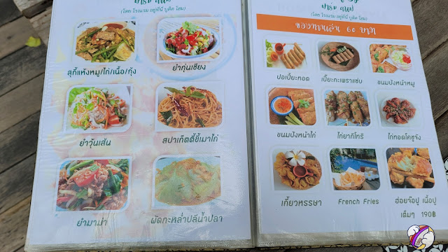 ป้ายชัด ๆ อีกที เออตาไม่ฟาดนี่หว่า มีรูปอาหาร อ่ะป่ะลอง หิวก็หิวร้อนก็ร้อง หวังไว้ไม่สูง ว่าร้านจะไม่ต้องใหญ่โตขอมีที่พักกับน้ำเย็น ๆ กับมีข้าวกับกับข้าวให้สั่งก็พอ