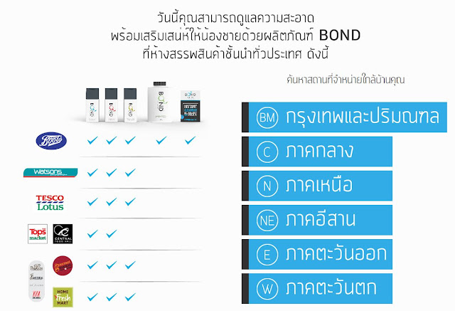 หรือวิ่งเข้าห้างสะดวกซื้อสรรพสินค้าตามนี้ก็ได้เช่นกัน :  https://www.bondthailand.com/location/